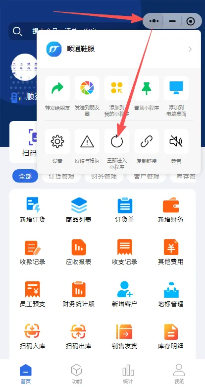 点击右上角的三个点,然后选择重新进入小程序
