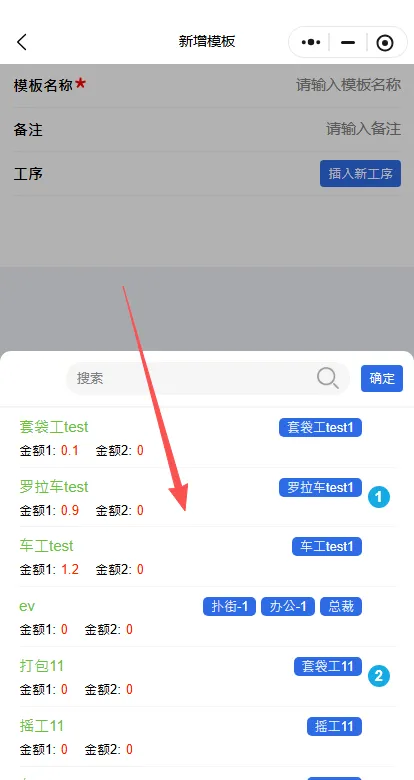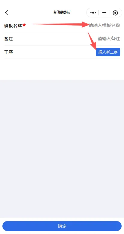 输入模板名称后点击插入新工序