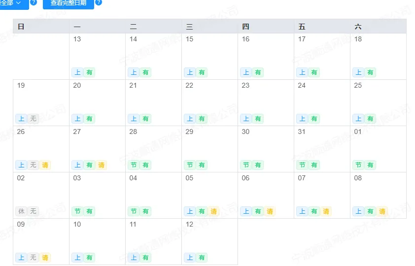 出勤天数 = 上班天数 + 节假日 + 外勤 + 带薪休假 - 补班天数(调班天数)