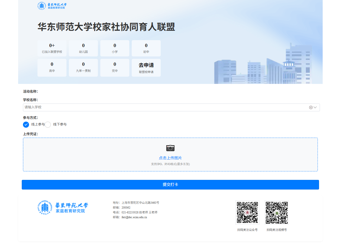 扫描二维码之后,进入半月谈的活动打卡页面,选择学校,选择参与方式,上传图片(至少上传一张,至多上传五张),点击提交打卡