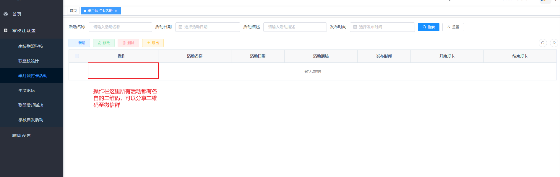 进入后台的“半月谈打卡活动”页面,通过扫描操作栏的二维码,可以跳转至活动打卡页面