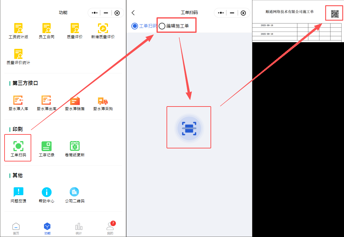 小程序上无法新增施工单,但可以扫描施工单上的二维码进行查看和修改