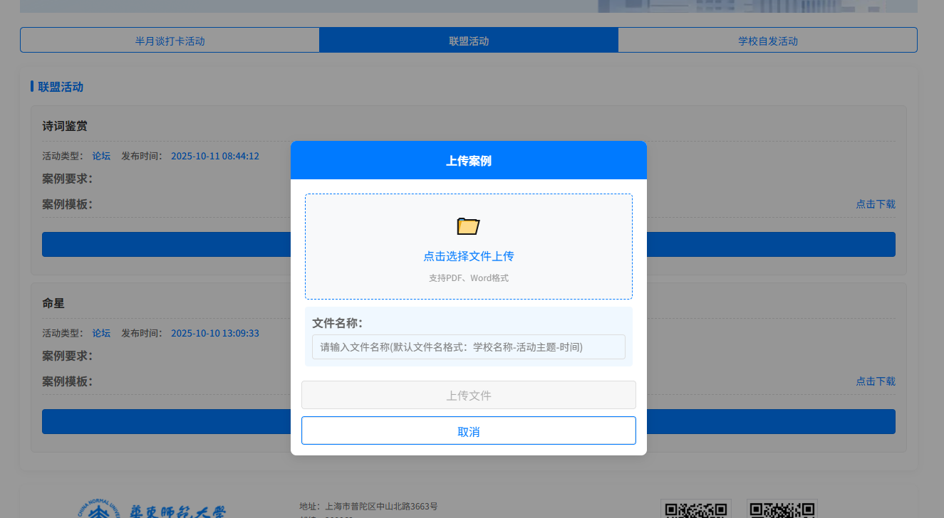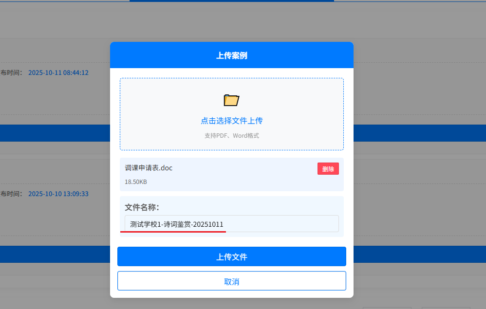 下载的模版填写好后,再返回页面,点击上传案例