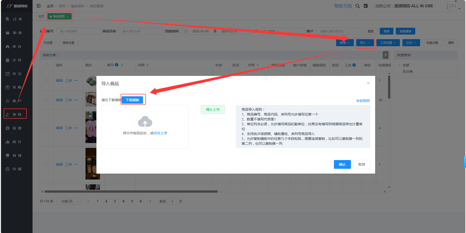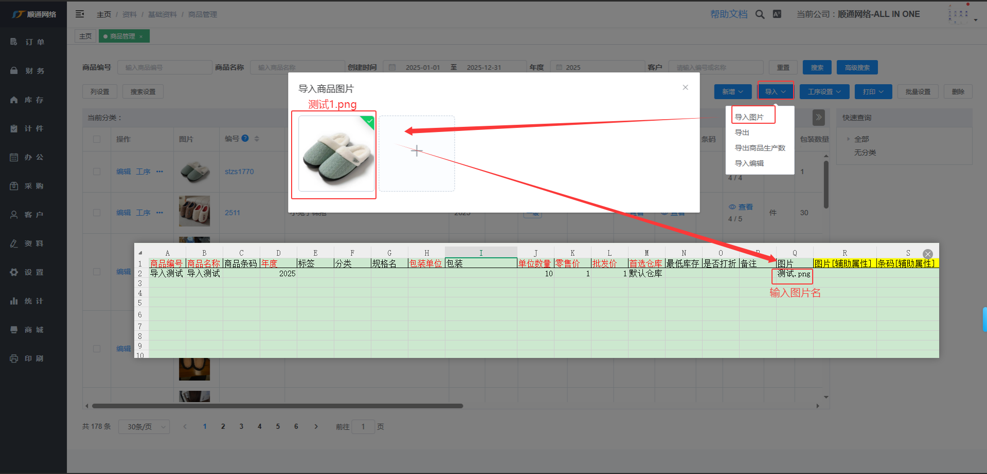 导入—导入图片,导入需要的图片,在导入模版中添加需要导入图片的文件名