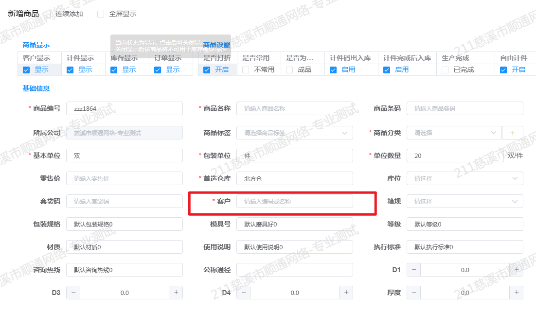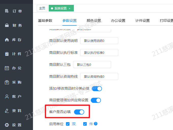 -系统设置新增客户必填设置,可设置新增、编辑商品时客户是否必填
