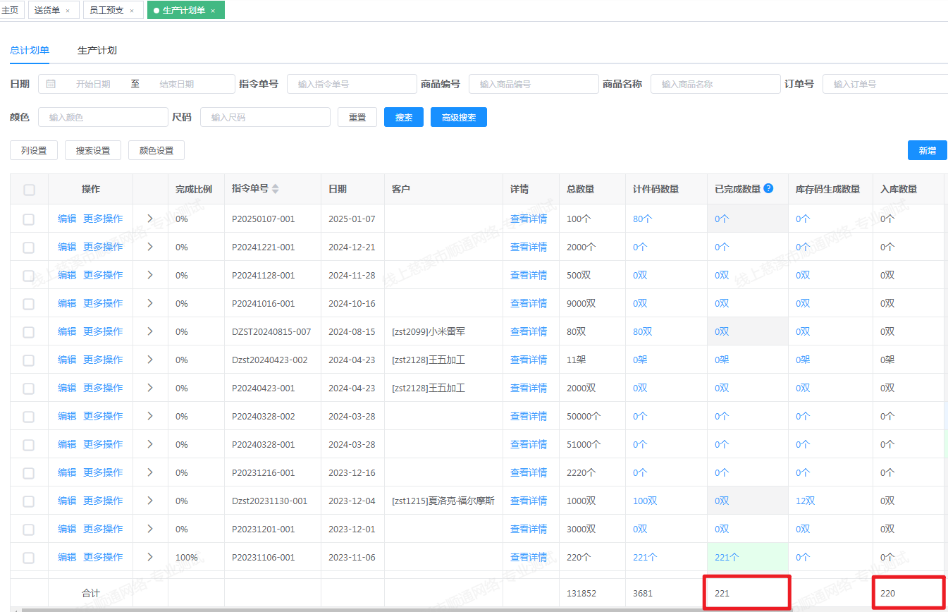 -总计划单新增入库数,完成数合计