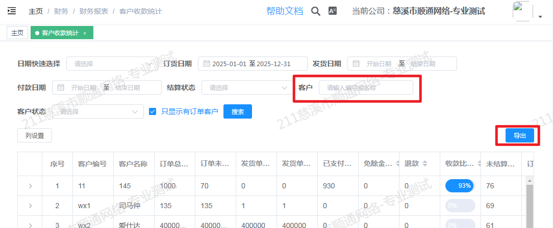 -客户收款统计新增客户搜索及导出功能