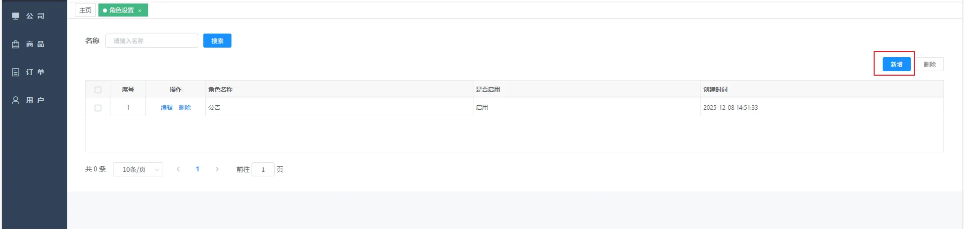 进入角色设置页面,点击新增按钮,跳出“添加角色”弹窗