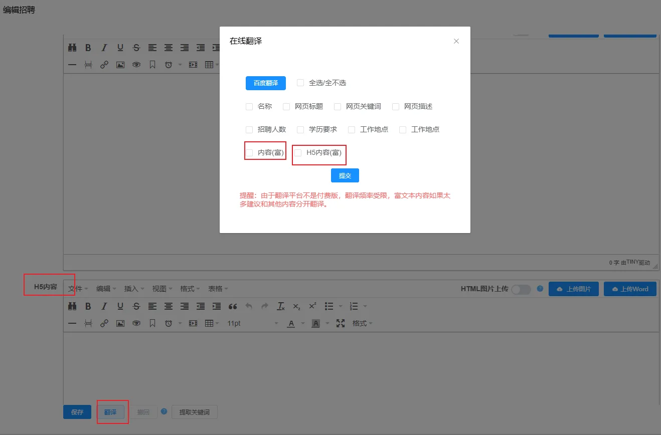 本次更新了下载列表的富文本内容翻译(将其他语种的内容翻译成当前语种)下载列表可对内容和H5内容富文本进行翻译