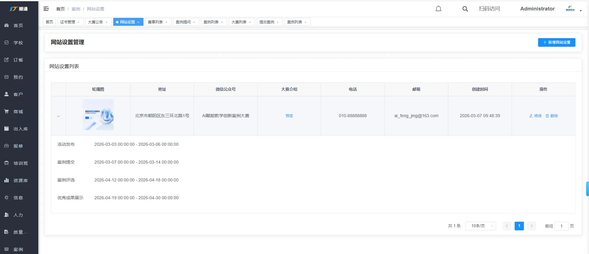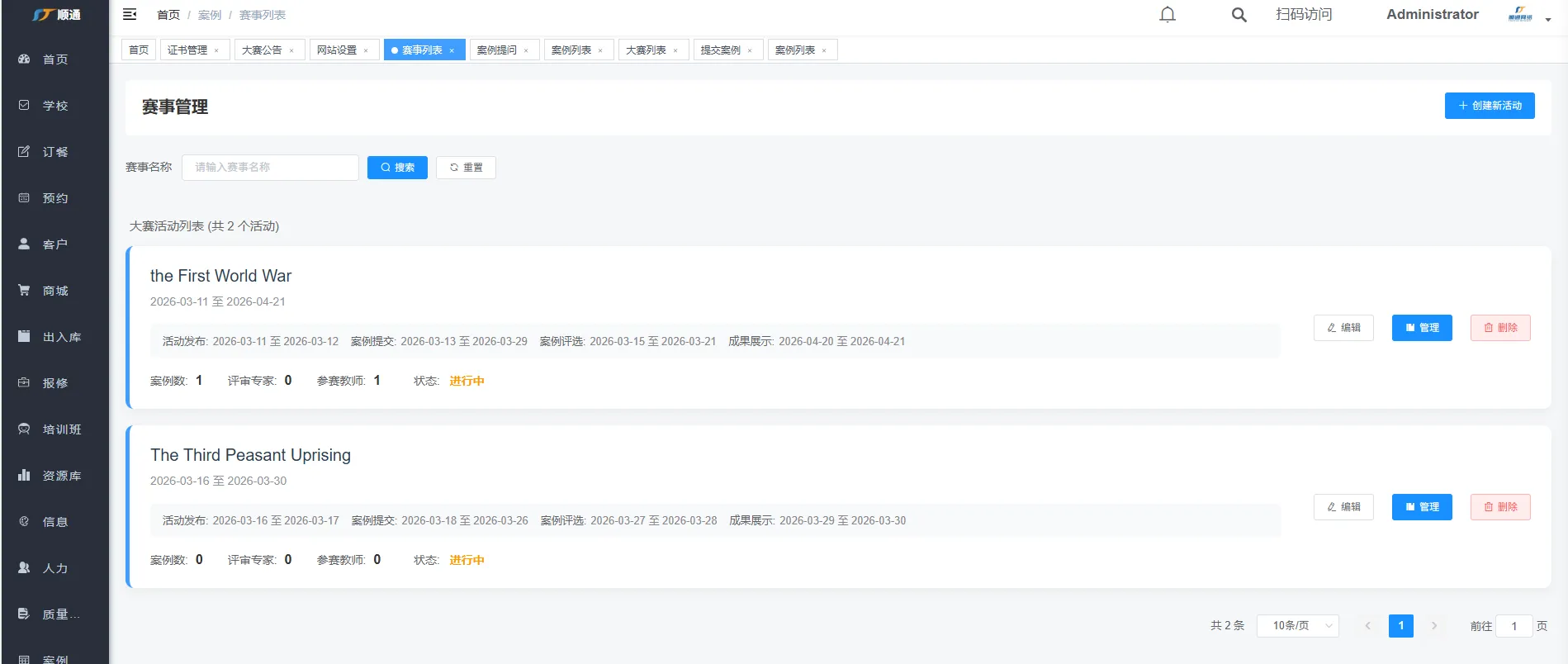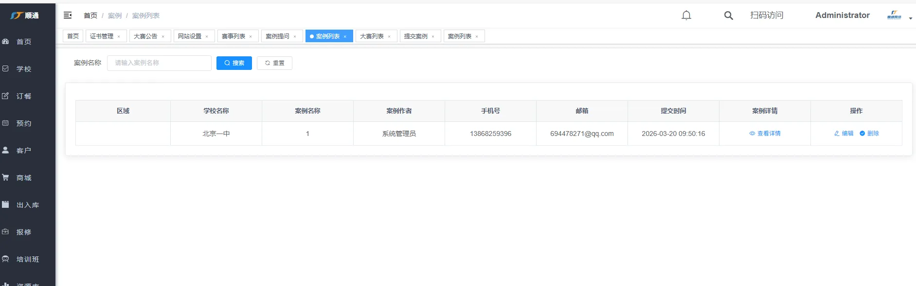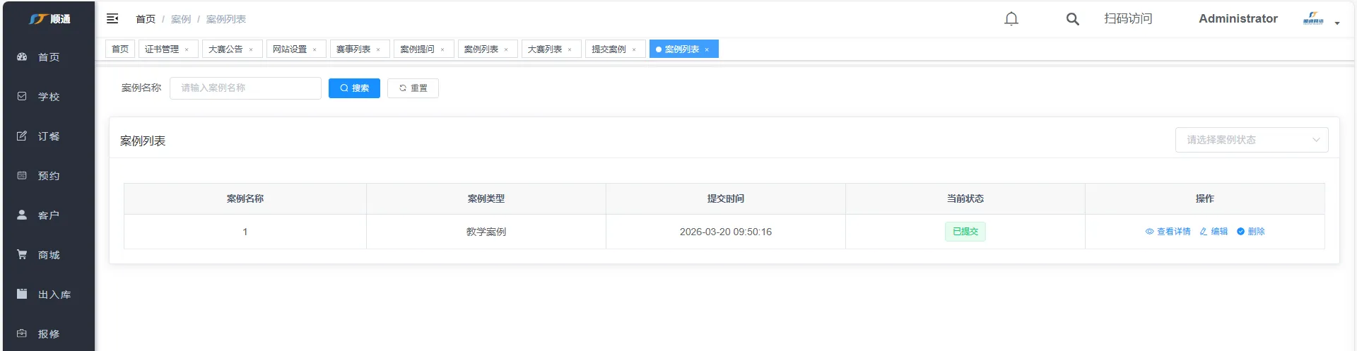 新增管理员用户和教师用户的“案例列表”及相关功能,管理员可对提交的案例进行查看、修改等操作,教师用户可对提交案例的状态进行查询