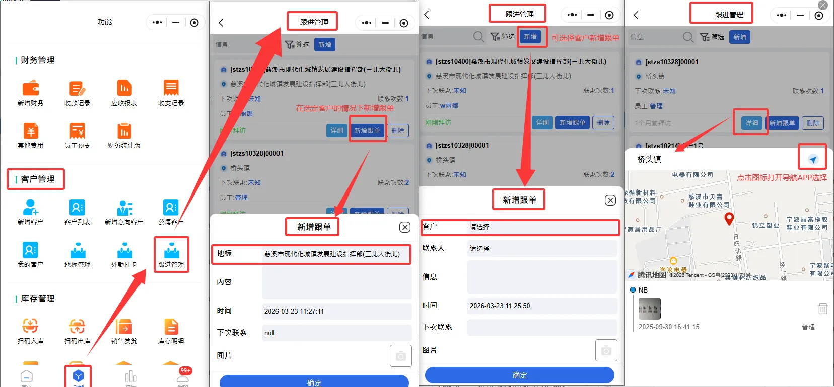 【功能】->在【客户管理】找到“跟进管理”图标->点击进入“跟进管理 ”页面即可查看客户的跟进记录。