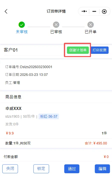 点击需要创建生产计划单的订单,创建即可