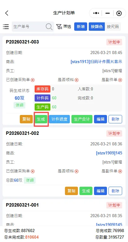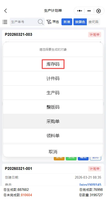 2.生产计划单生成库存码