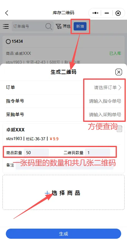 点击生成→生成库存码。