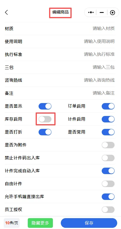 如何通过商品管理设置商品是否能进行库存操作