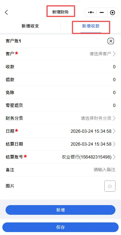 财务—新增收款,添加收款记录