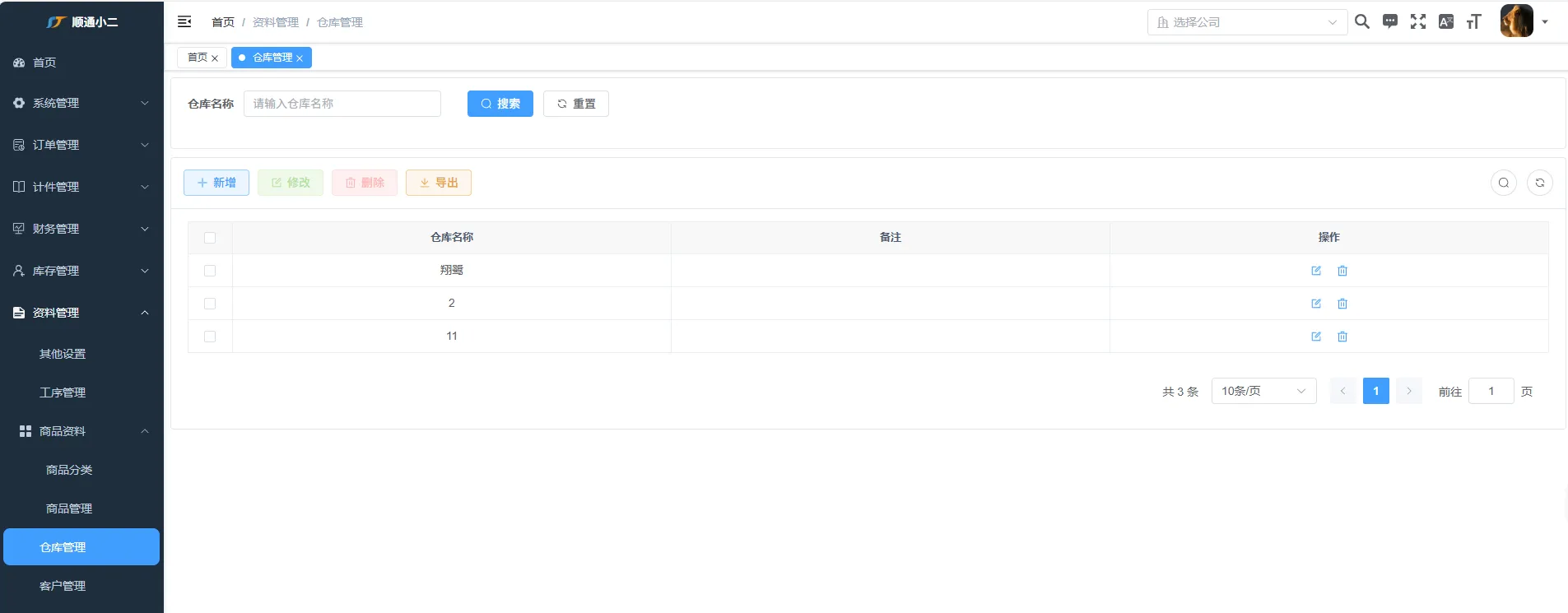 进入仓库管理页面后续仓库将作为商品的一项属性字段使用,代表所选商品放置于哪个仓库