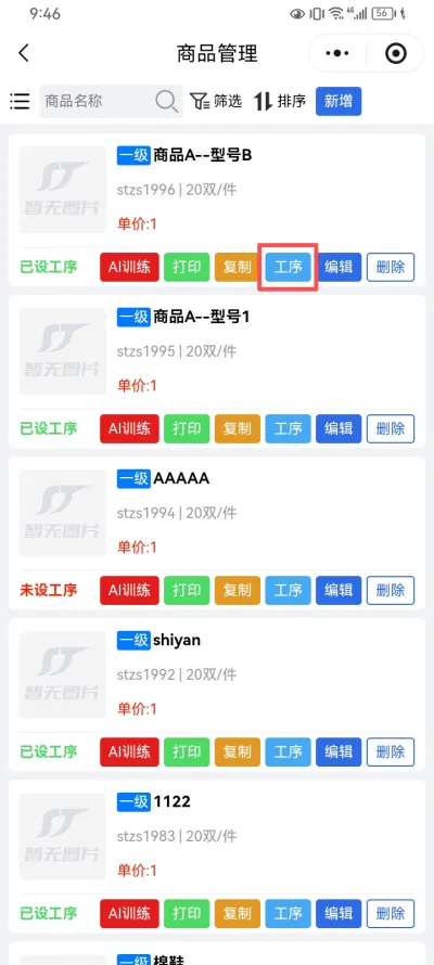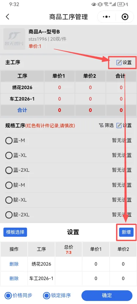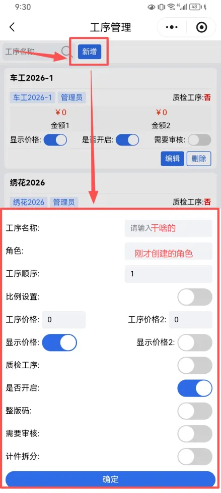 手机端添加工序方法: