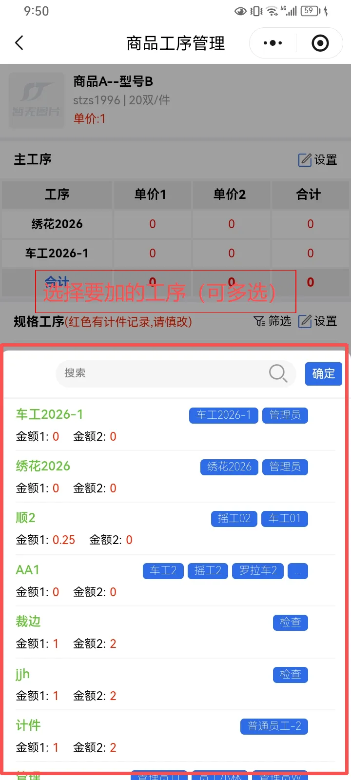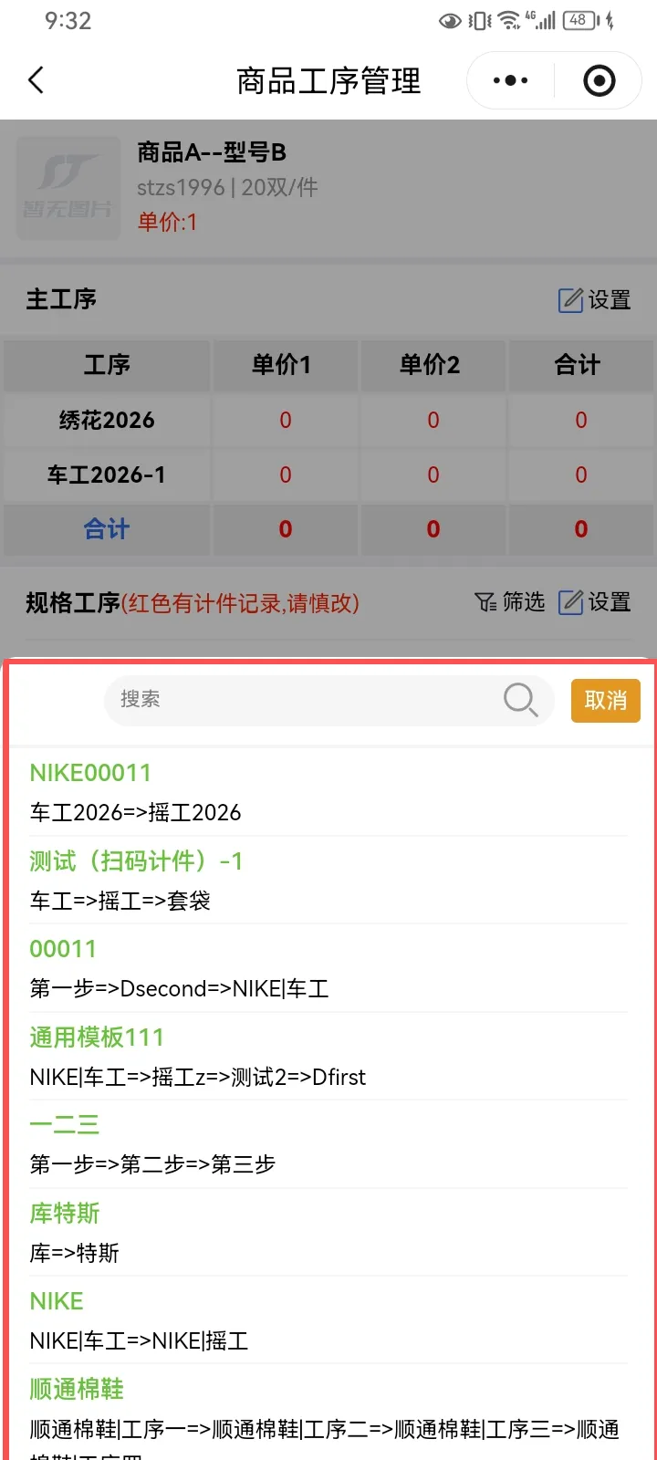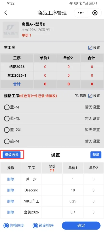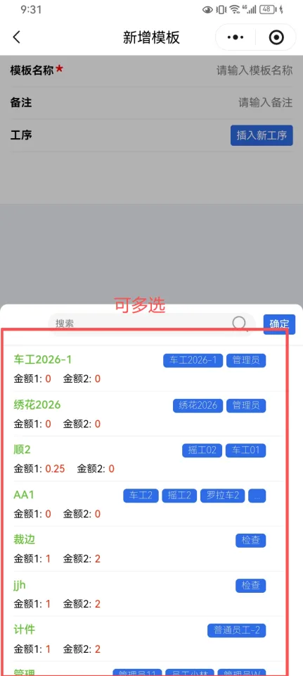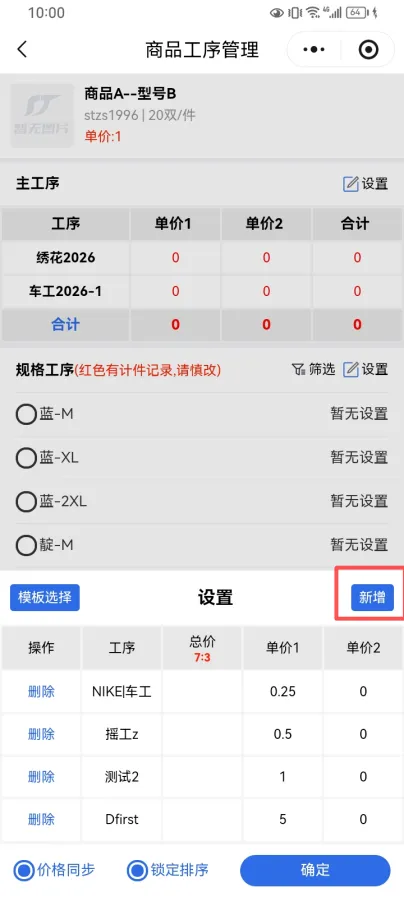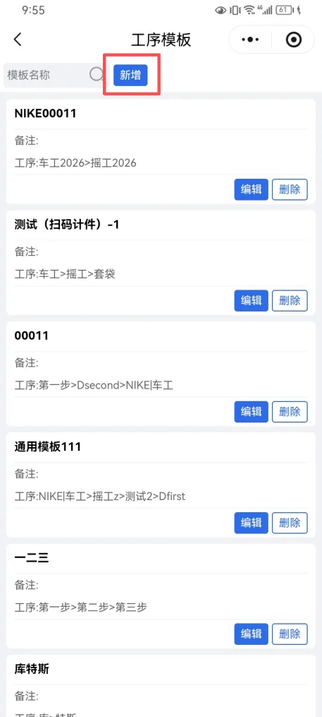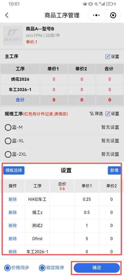 在添加工序模板后,再次点击新增,添加工序 即可完成独有工序添加 记得保存