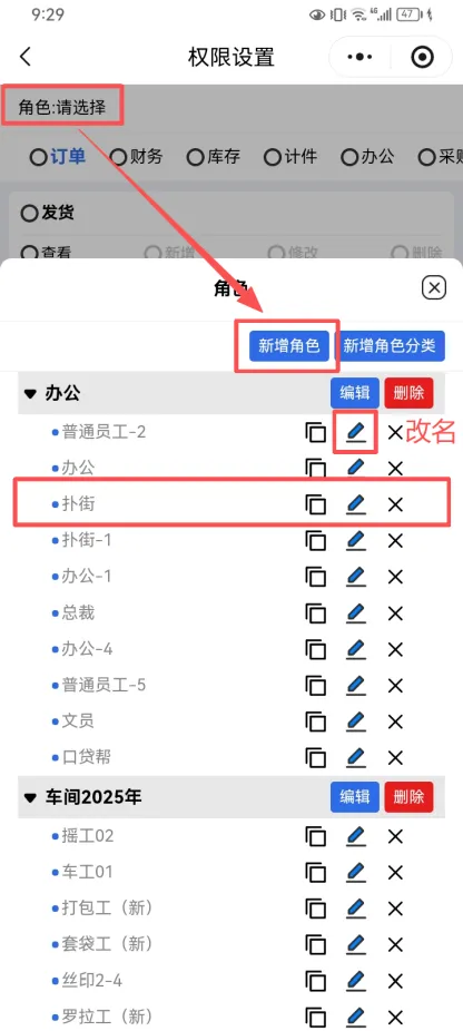 2.添加职员权限(把需要权限添加一下)一般是不添加 删除或添加的权限