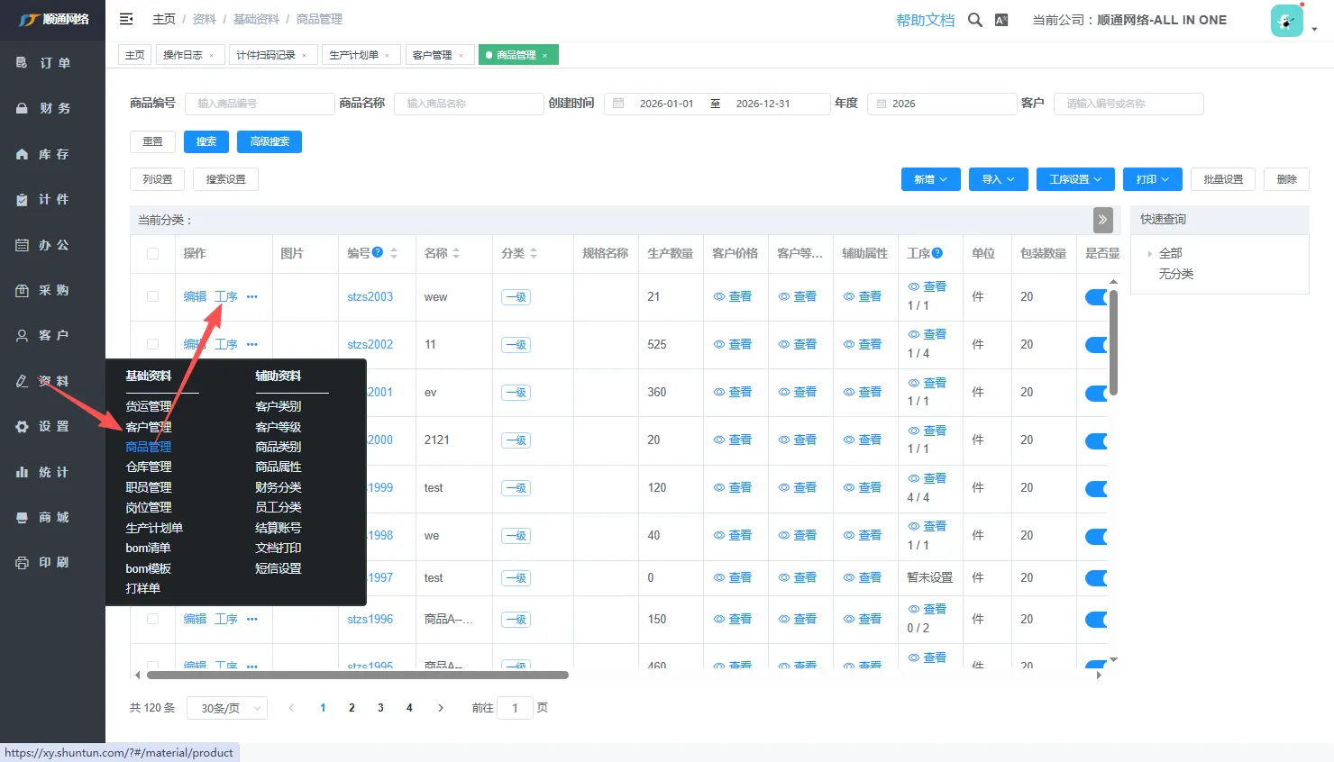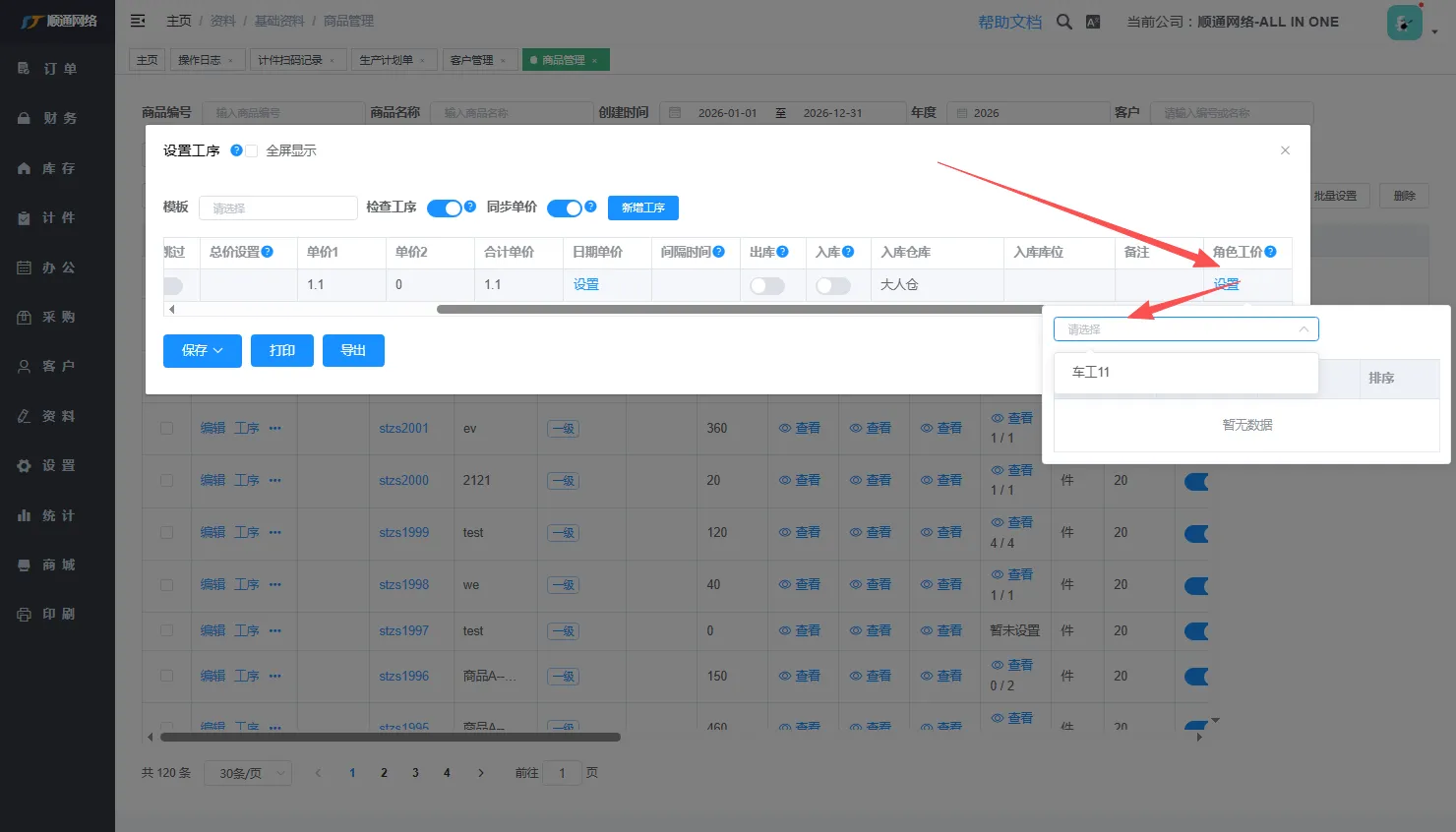 首先找到需要添加角色工序的商品,点击工序