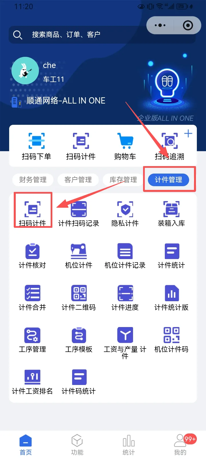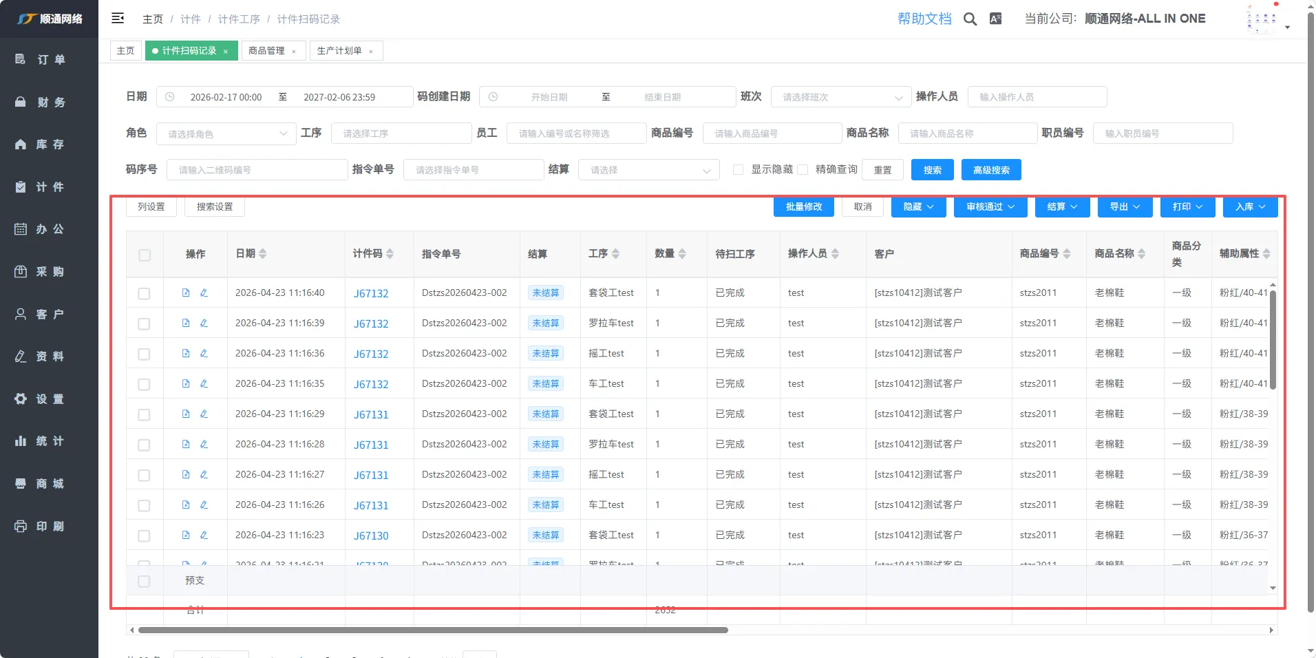 工人可以拿手机进行扫码记录,扫码记录可以在几件二维码扫码记录页面进行查看