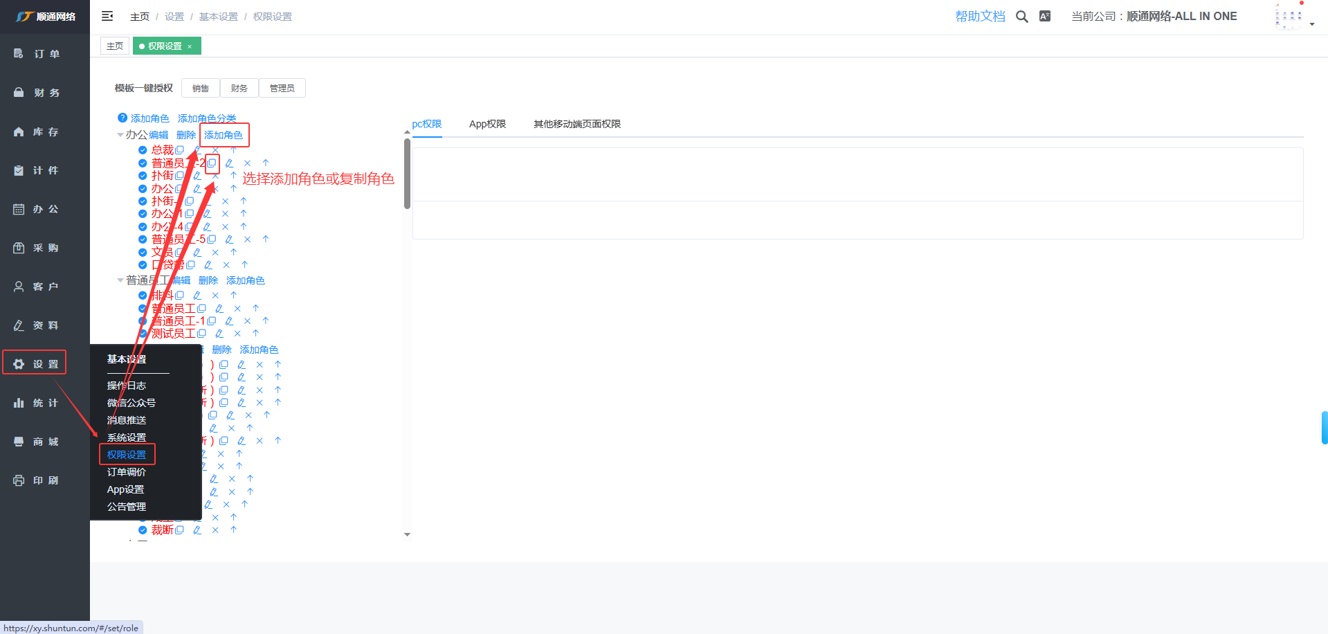 1、新增工种,需要进入 设置→权限设置 新增角色/复制角色。