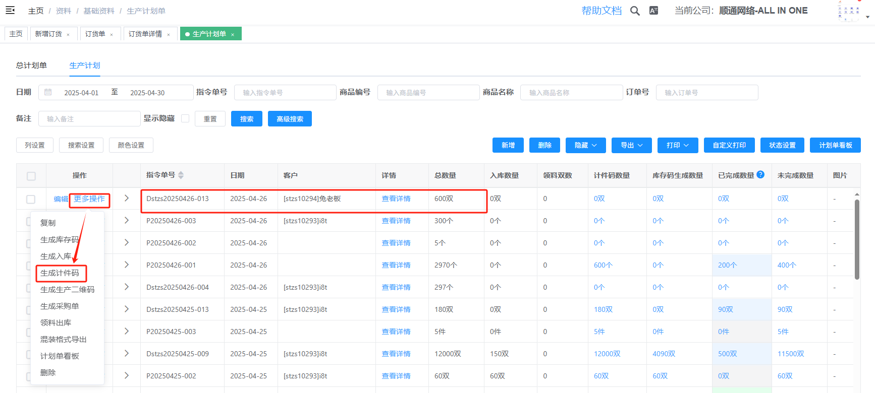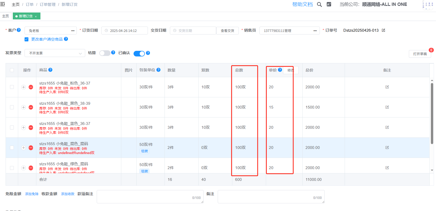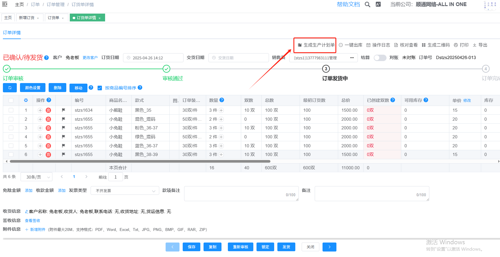 保存之后自动跳转到订货单界面,找到刚才开的单子