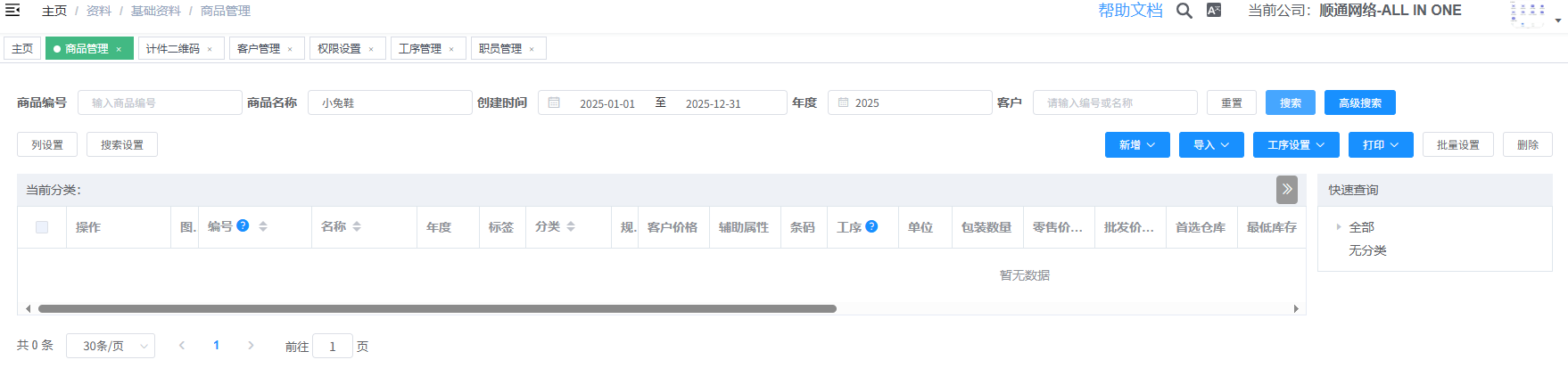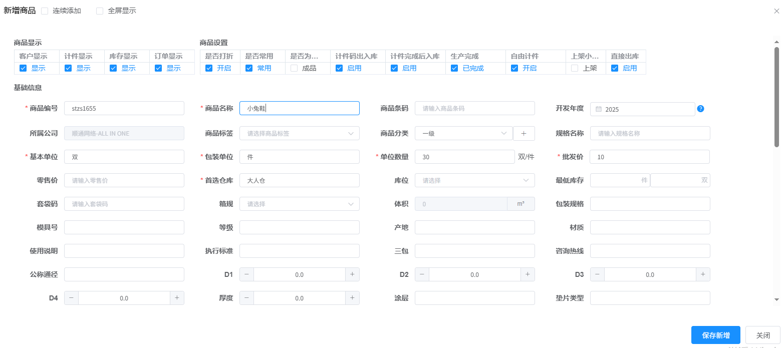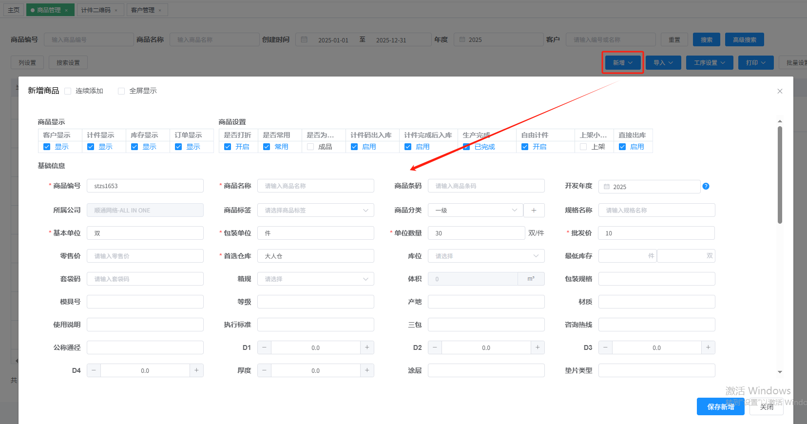 显示无数据,说明商品信息没有这款商品,点击新增添加