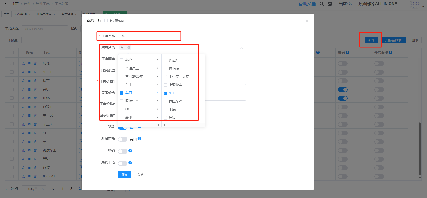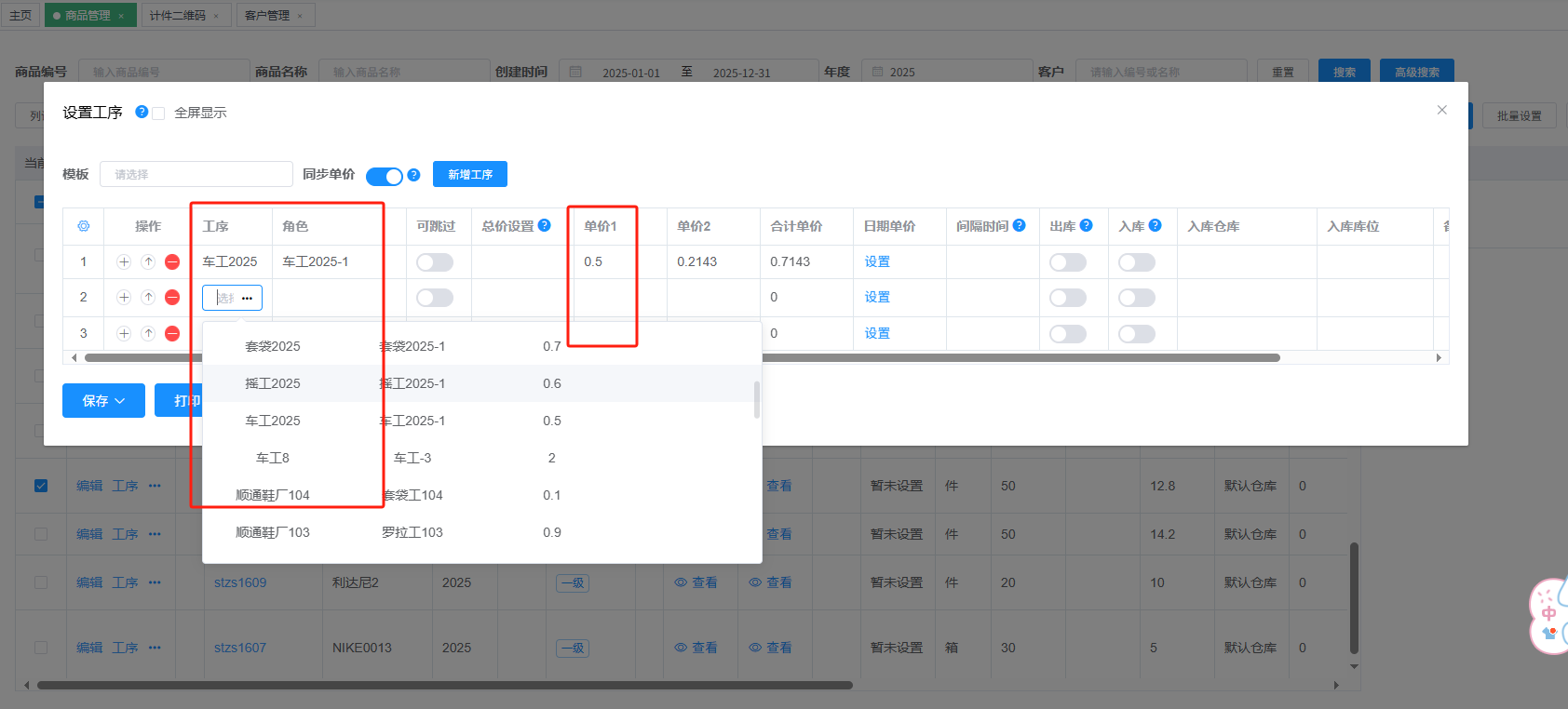 工序就是做这一款商品需要的工序,角色是对应做这道工序的员工工种,单价是员工计件的价格