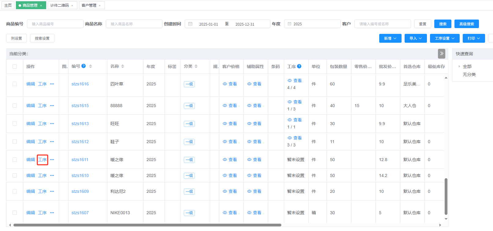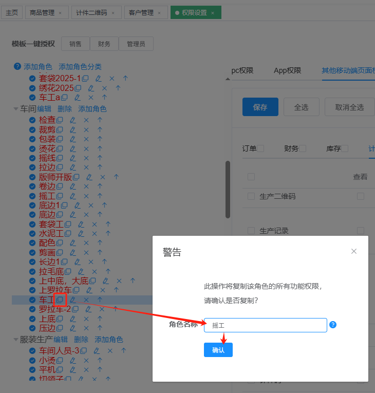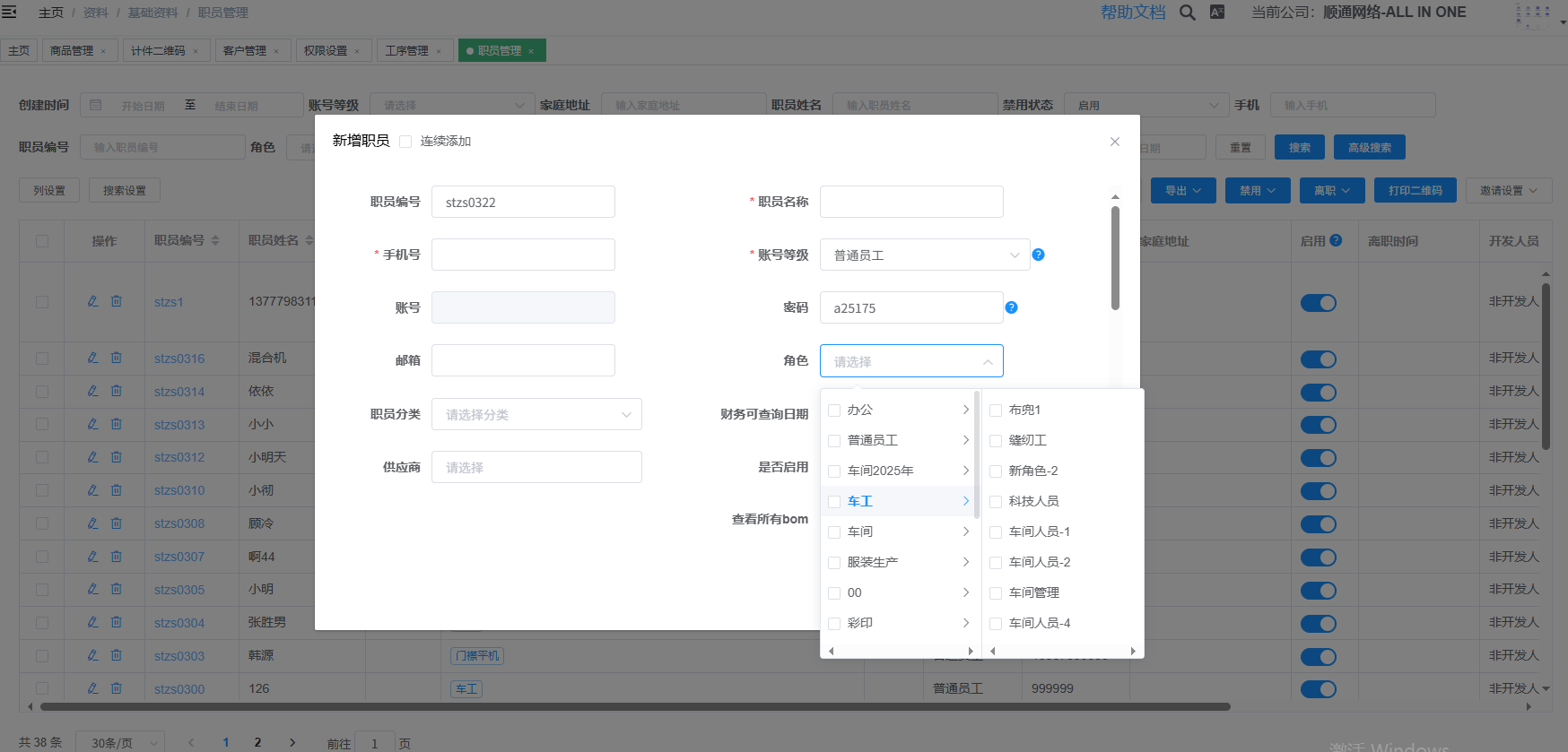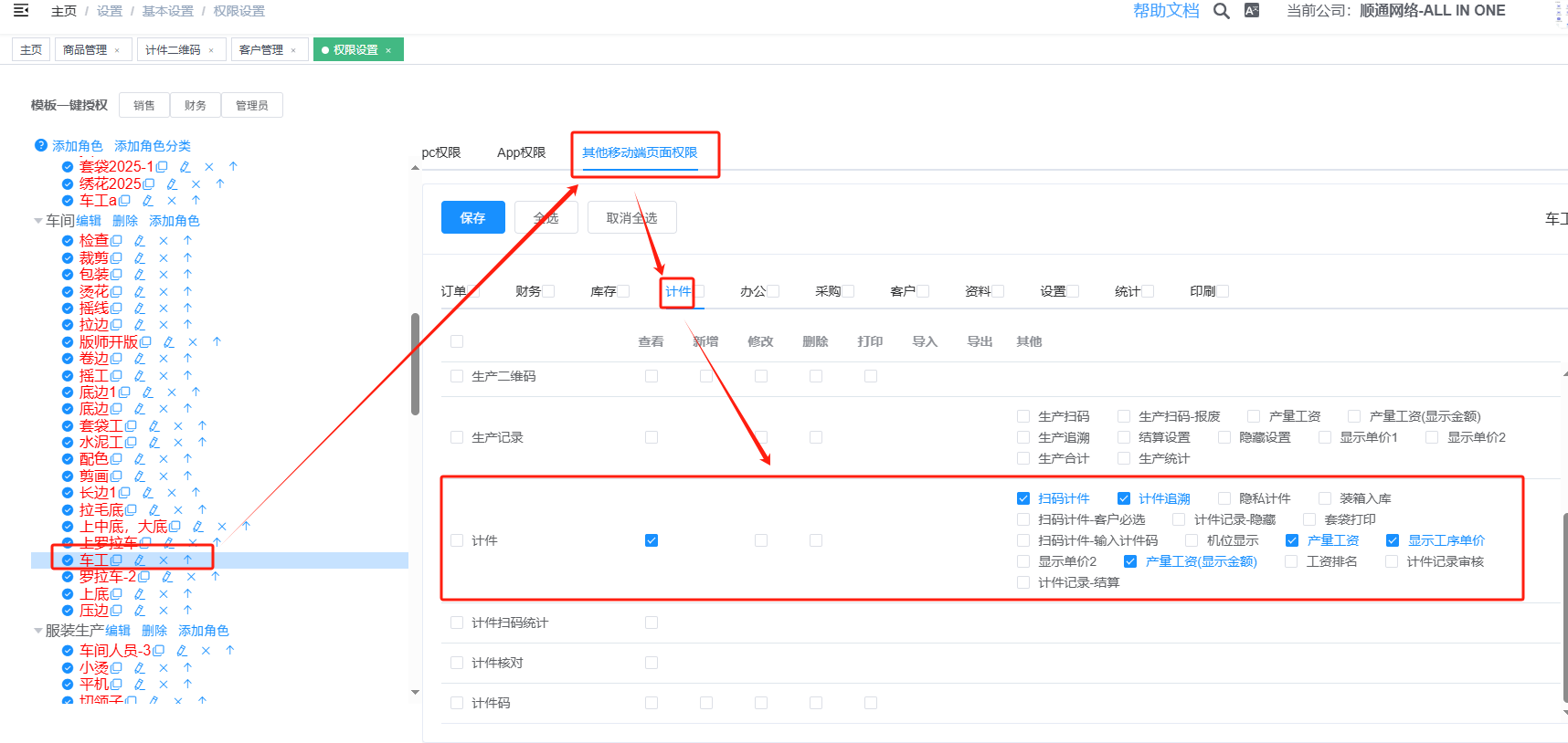 需要在软件里录入开订单时要用到的客户、商品、工序等信息,以及员工的计件工资,每个员工的工种角色