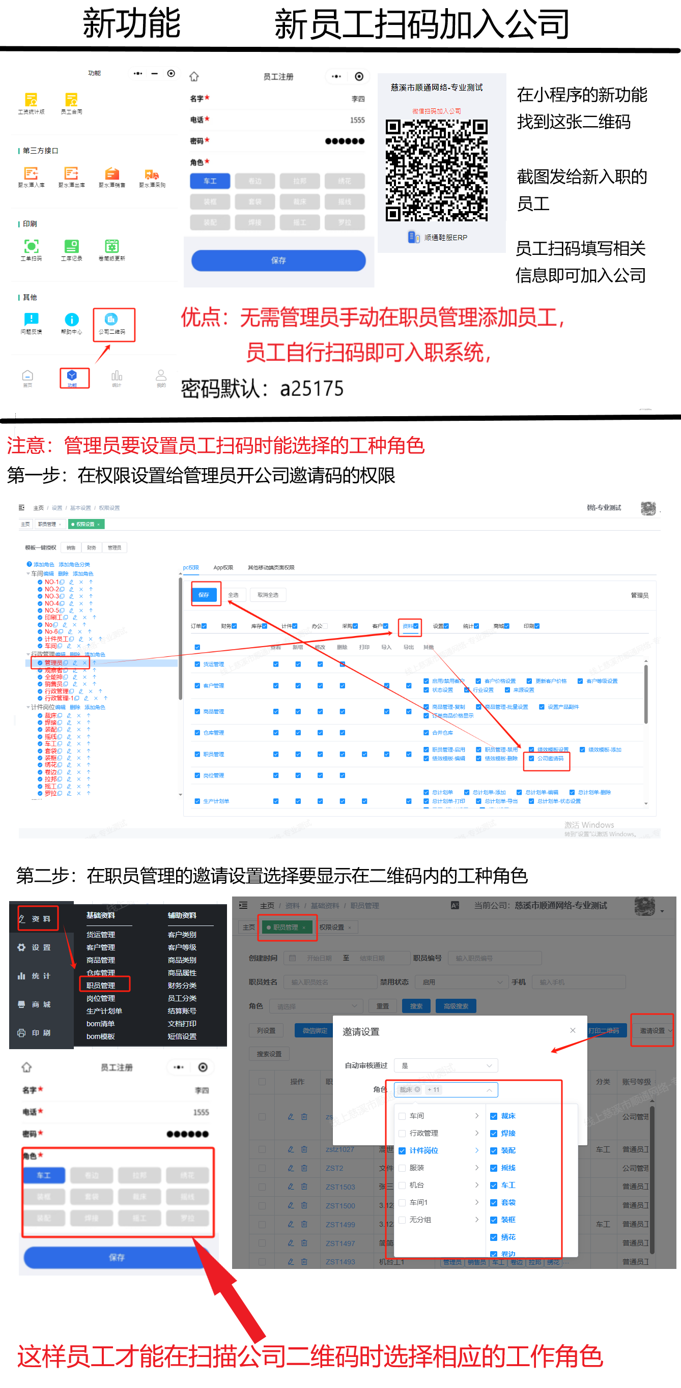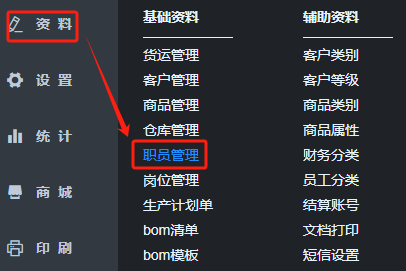 在职员管理新增职员,填写姓名和手机号,手机号就是员工登录小程序的账号,密码在系统设置里设置