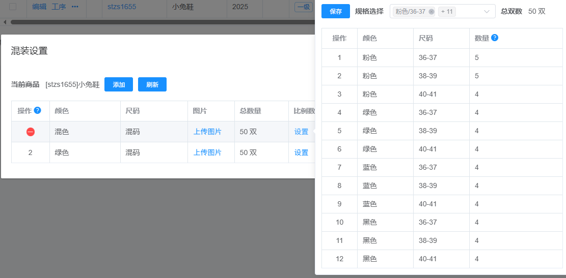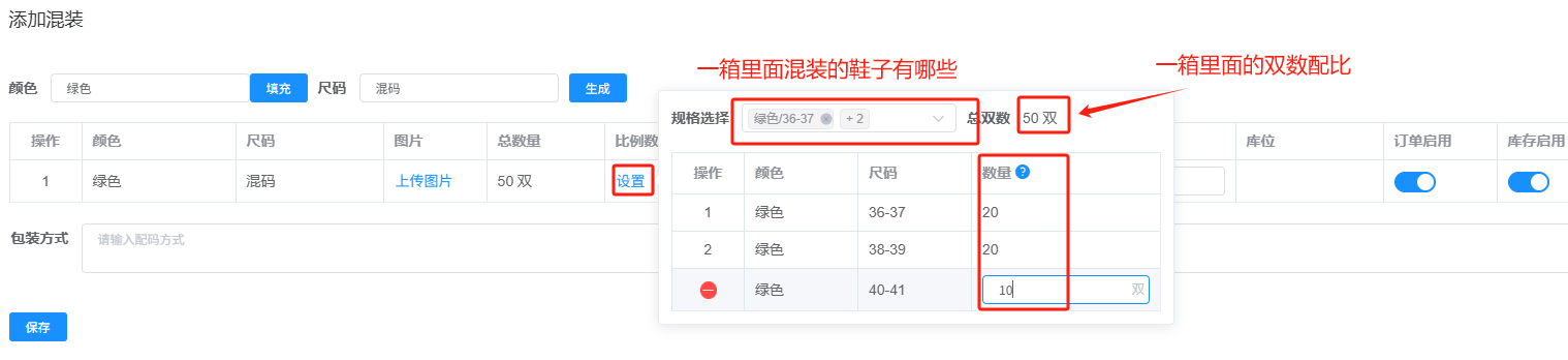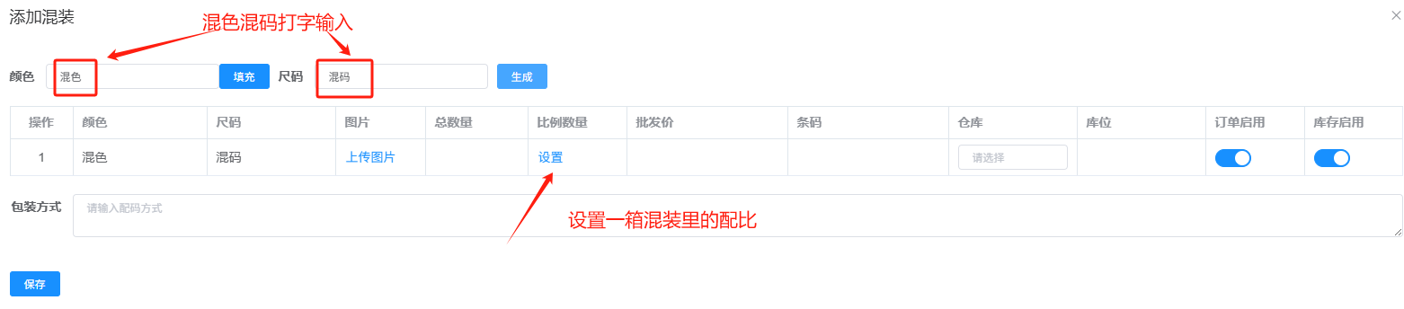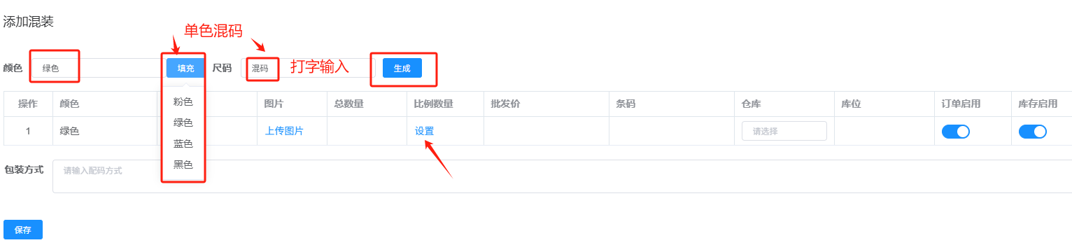 仍然是新增商品界面,往下滑,添加商品的颜色尺码信息
