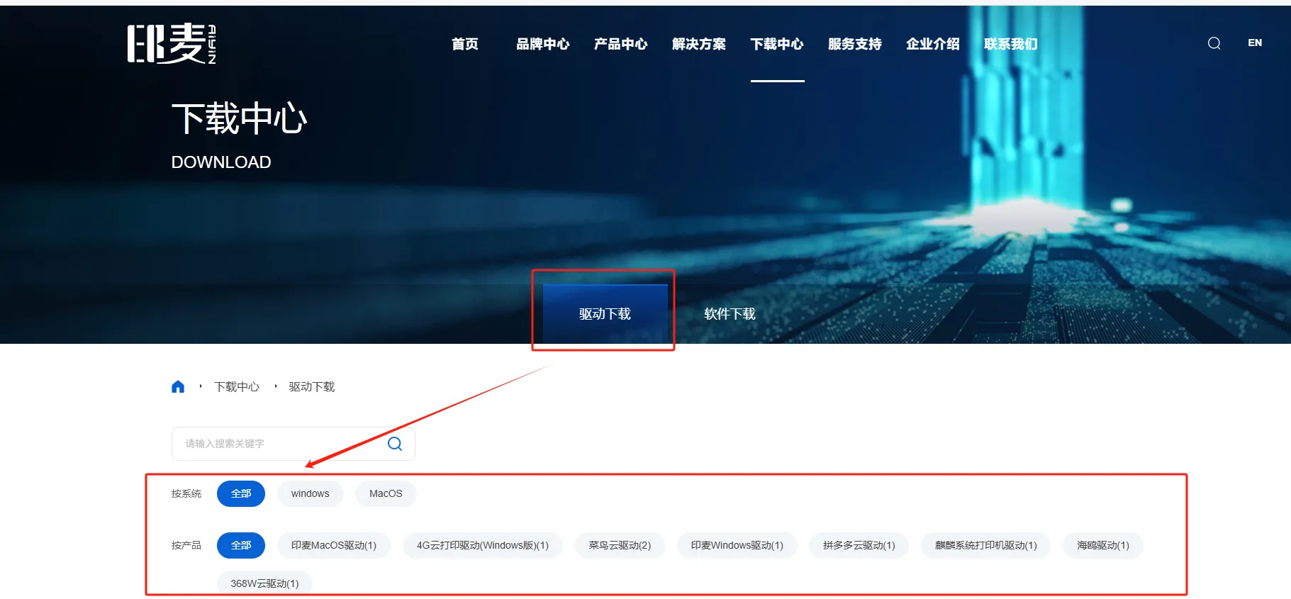 选择自己的打印机类型后,点击图片下载即可