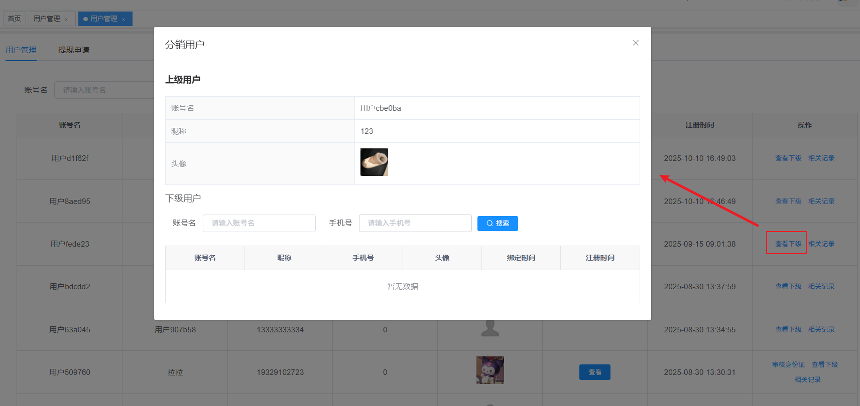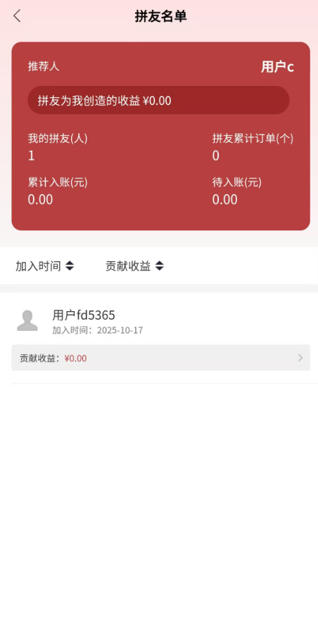 活动规则可在相关设置中进行修改每个用户都有自己的后拼码,将自己额后拼码分享给其他用户,其他用户使用app扫描后拼码即可成为拼友在app中,可以在我的页面通过拼友名单看到自己的拼友在后台,可以通过用户管理页面操作栏的查看下级,看到自己的拼友
