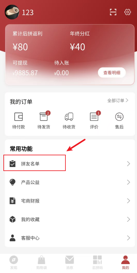 让别人成为自己的拼友或者成为别人的拼友,可以享受商品购买的优惠