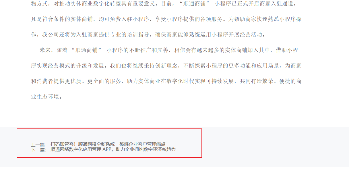 本次更新主要在顺通官网新增了新闻的上下跳转链接,“上一篇...”“下一篇...”来进行新闻内容的跳转,以及便于查看前后新闻的文章标题