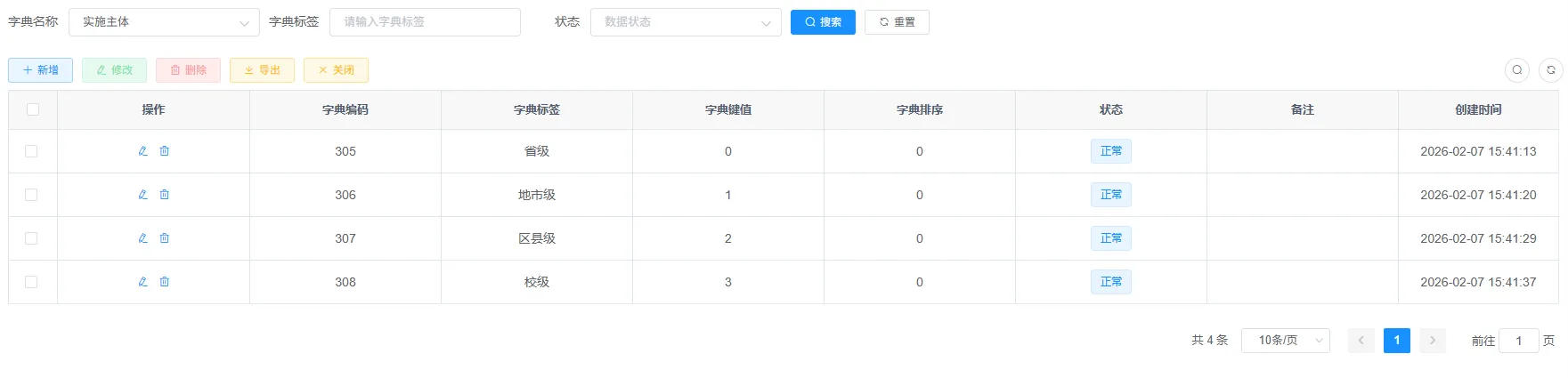 新增赛事信息模块的增、删、改、查、导入、导出功能