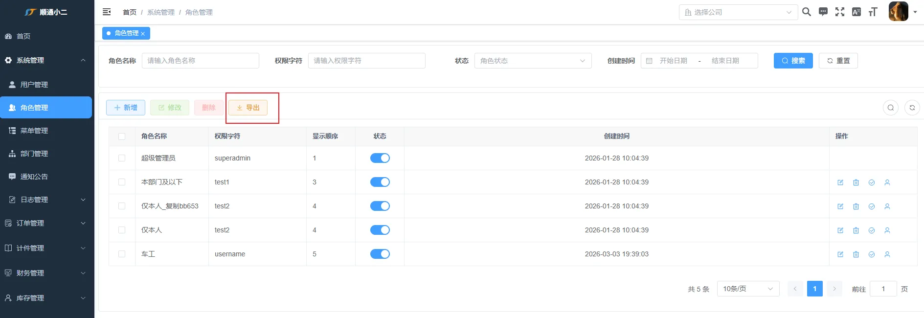 点击导出按钮可以将角色列表以excel表格的形式导出